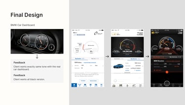 We want users to feel familiar with this app, so we decided to incorporate car elements into the design. This approach helped us establish a visual language that resonates with our users. For example, we used a car dashboard as a central visual element. The dashboard reflects membership level growth through various activities, serving as the highlight of the entire interface.