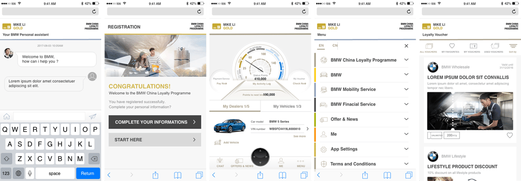 The app was designed specifically for BMW owners, reflecting the premium experience of the BMW ecosystem. Key brand differentiators — futuristic, innovative, premium, and responsible — guided the overall tone, activities, and user experience of the loyalty programme.