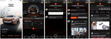Customer Service: The Home Screen allows users to chat with a BMW customer service agent at any time.
